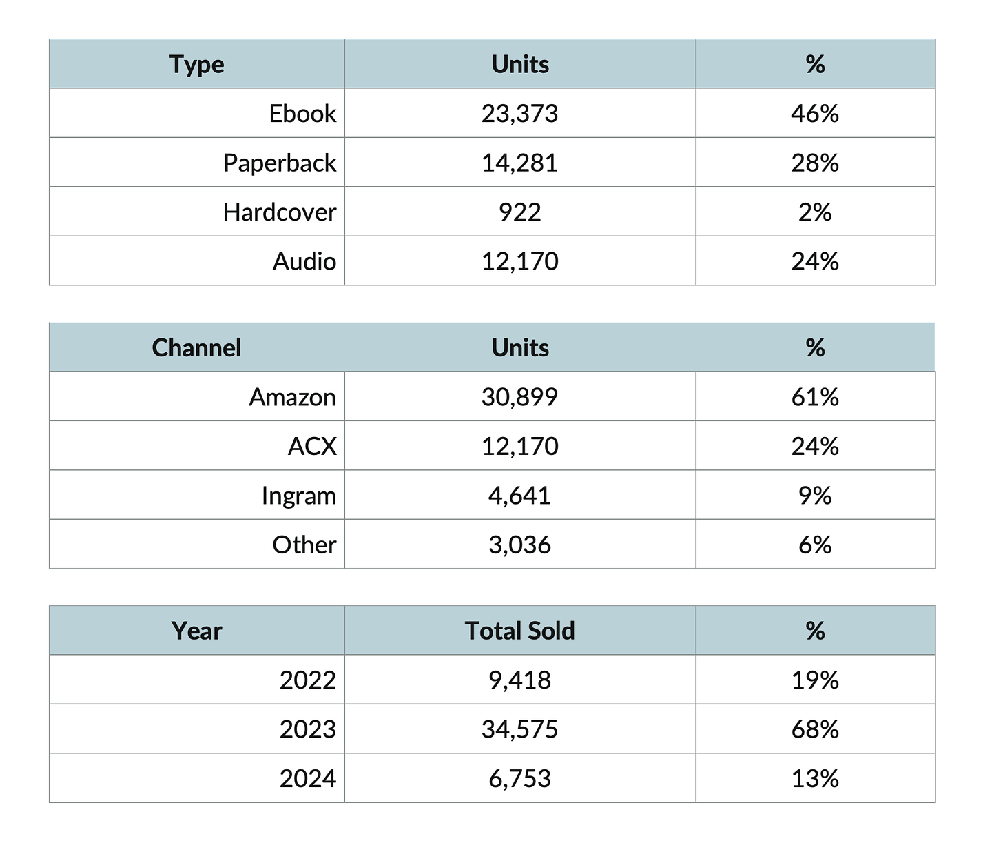 One of the biggest misses for me was not getting my audiobook out sooner. I was shocked at how well the audiobook sold once it was published. Since releasing it in July 2023, it’s been close to a quarter of all sales.