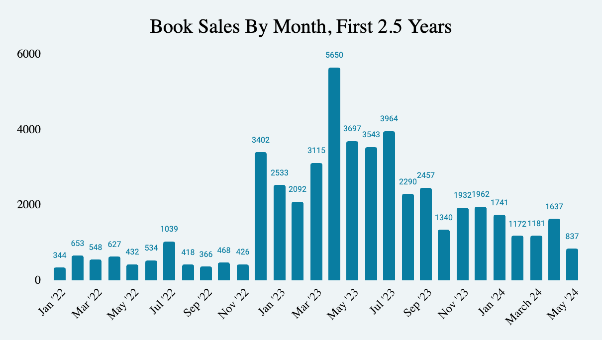 When I published the book, I wasn’t sure what would happen. If I had to guess how many books I might sell over the coming 2 years, I would have guessed somewhere between 2,500 and 5,000.