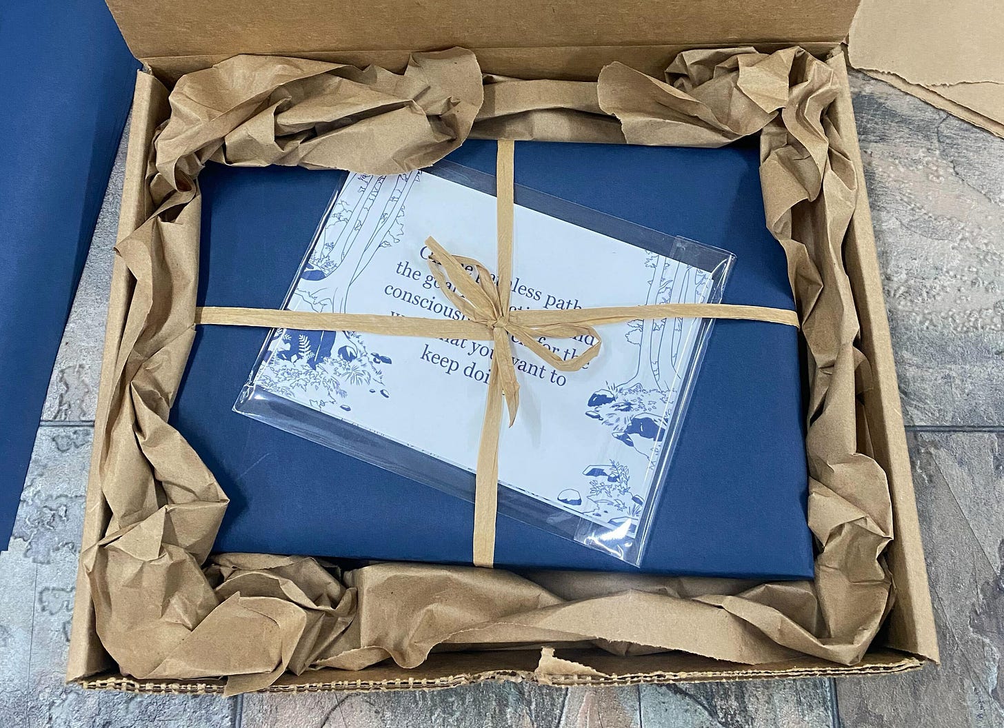Inside the wrapped package will be a shrink-wrapped book, the full notecard pack, and a notebook. In addition, you’ll get a handwritten card that we can customize for gift giving or your own entertainment.