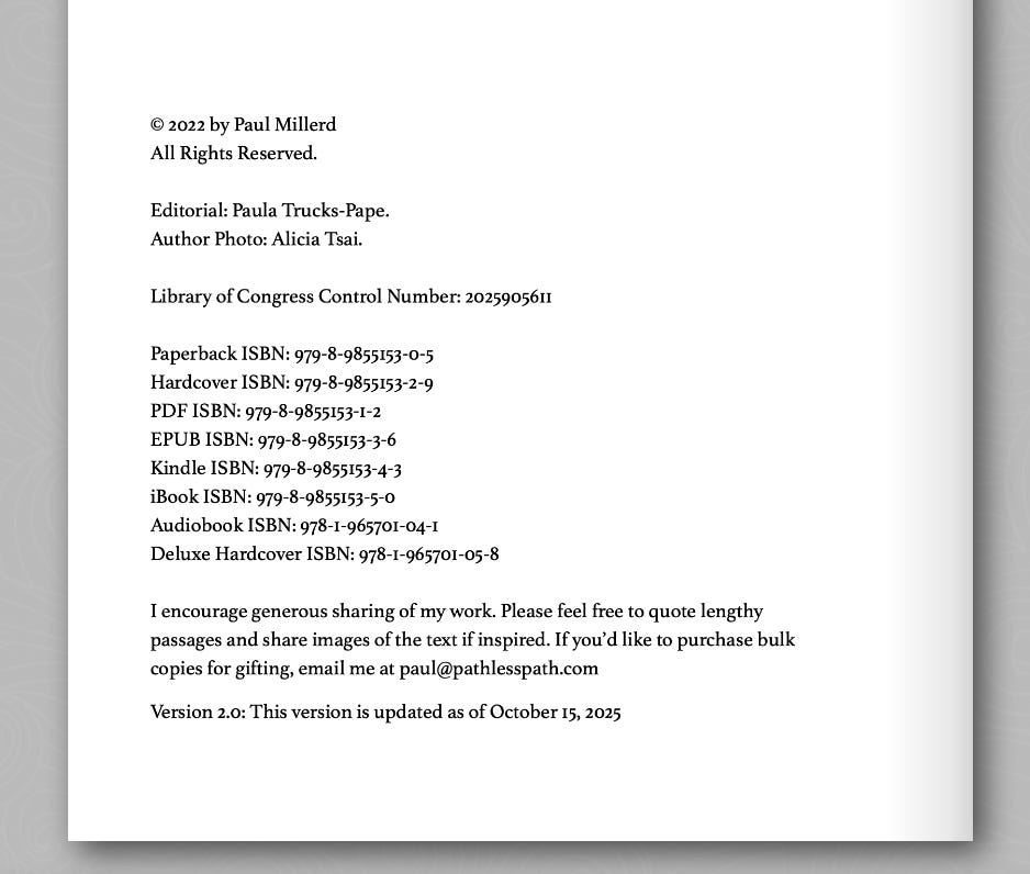 I also took their edits and cleaned up a bunch of stuff in the other versions, and have launched these as “Version 2.0” of The Pathless Path. For now, the updated author’s note and foreword will only be in the special edition hardcover, but I may update everything for the book’s 5th anniversary in 2027.