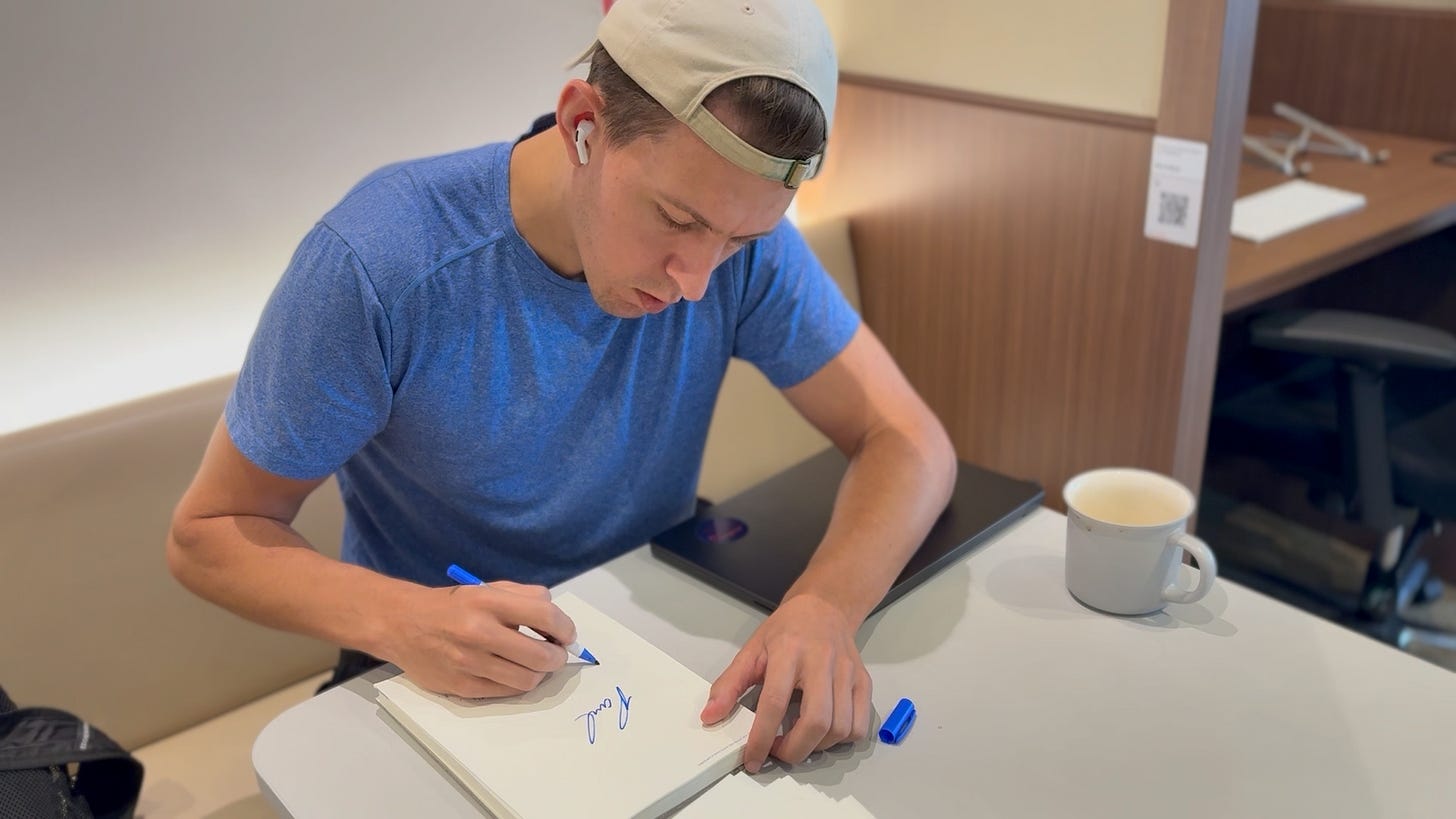 This was a bit tricky to pull off as the book was being printed in Italy, the books are being shipped from the US, and I am living in Asia. Signing 500 pages a day in a coworking office in Thailand was more complicated than I expected; my signature evolved daily.